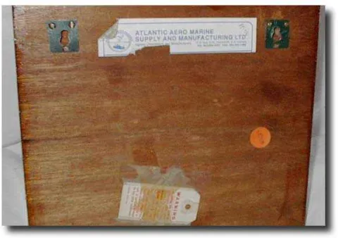 Strike the "watch" progressively through each four hour segment. This one is complete with original mounting board, about ten inches square. Brass clock is about five inches in diameter, three and half inches deep. Original mounting board about ten inches square. Label on back of board reads "Atlantic Aero Marine, Dartmouth NS" and dial of clock reads"Airguide". Eight day, with s/f and shutoff on dial, in good running order. Pretty nice dial with bevelled glass. Brass side section do show some slight stress marks, but not that noticeable.