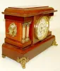 8 day; time and strike; gong strike on the hour and half hour; 4 1/2" marked paper dial; signed movement; red adamantine with columns and stylized sph...
