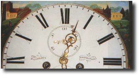 Circa 1840 Mah Longcase Grandfather Clock with painted dial. In Excellent working order. Maker: David Lumsden of Anstruther, Scotland 1827/1850. This one is simply a of work of art! This clock sits approximately 84" tall and 19" wide. The wood has been refinished and is in wonderful condition. There are no cracks in the wood case whatsoever, just stunning... look at the pictures! The movement and lead weights and pendulum are all original. There have been no replacement parts on this clock, it's all original and gorgeous! Chimes the hours on the original brass bell. The clock face is very crisp and clear with no fading and it is signed "D. Lumsden" and "Anstruther". Excellent details on the painted face of clock depicts a what appears to be a fishing boat in a bay or cove.