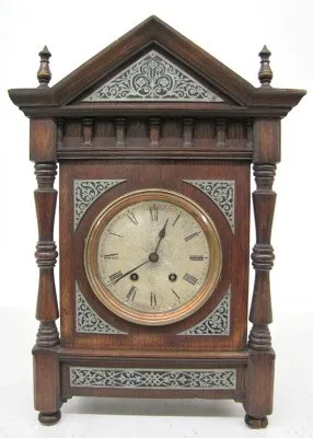 Lenzkirch Wood and Inlaid Metal Shelf Clock