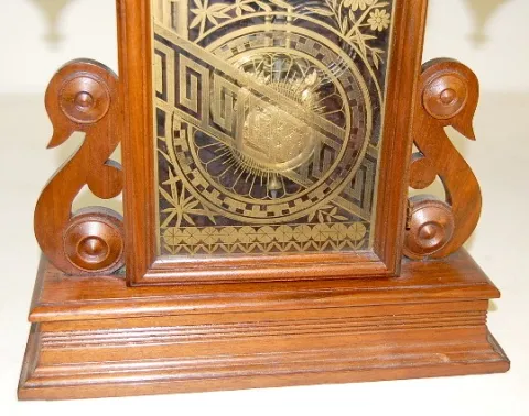 8 day time and strike; 5" paper dial; has pendulum; Greek key and floral decorated glass door; not tested for running condition. (New dial; no hands.)...