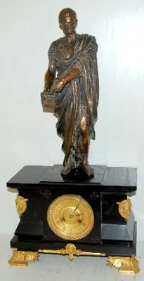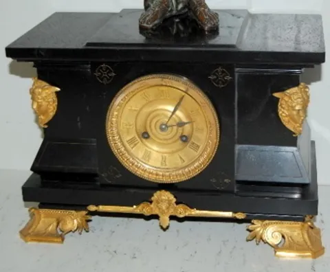 French L. Marti Slate Clock W/ Statue