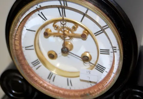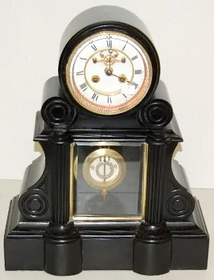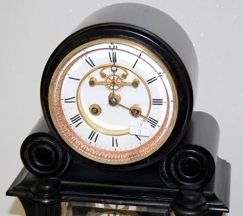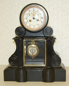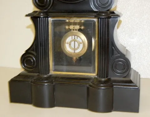 8 day time and strike; 4 3/4" double sunk porcelain dial, unmarked with visible escapement; has pendulum; no key; movement signed A Horlocerie Paris 2...