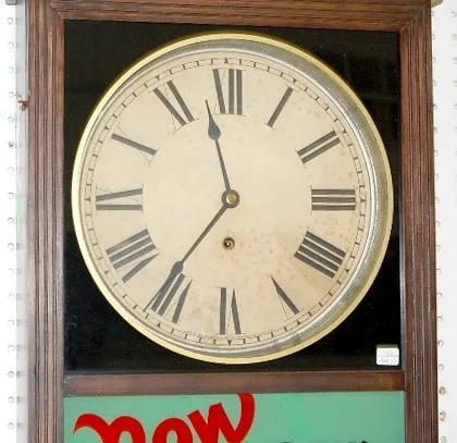 admin 16 March 2026 Clock image thumburl Sessions Advertising Store Regulator Clock time only; mahogany case. (stained dial.) 38"... Subscribe here Manufacturer Sessions Price Type auction Sort Price Subscribers only Price Realized Subscribers only Pre-Auction Estimate Subscribers only