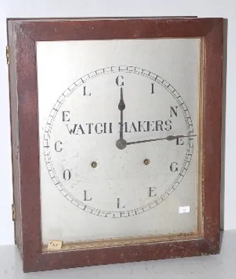 admin 16 March 2026 Clock image thumburl Elgin Watchmaker's College Double Sided Clock T and S metal dials. 16 1/2" x 14" x 6"... Subscribe here Manufacturer Elgin_National_Watch_Co Price Type auction Sort Price Subscribers only Price Realized Subscribers only Pre-Auction Estimate Subscribers only