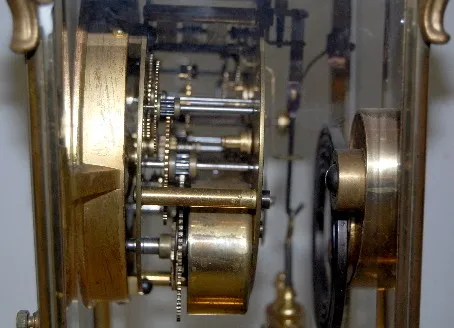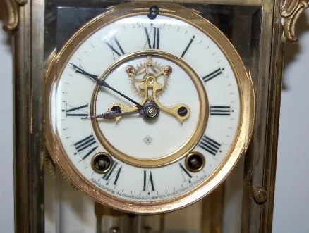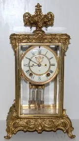 Urn top; porcelain dial; open escapement; T and S; running at this time. 16" This lot is in rough, as is, as found condition....