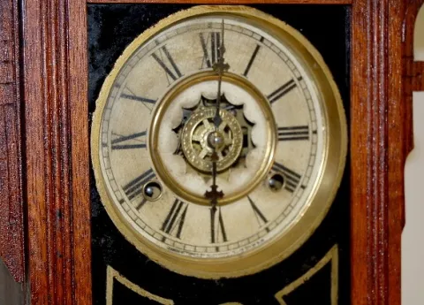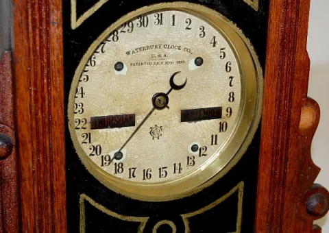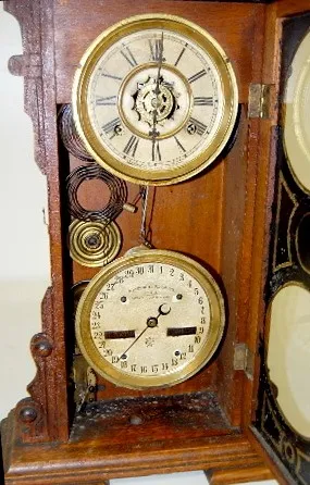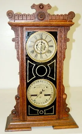 Oak Waterbury No. 44 Double Dial Calendar Clock