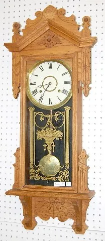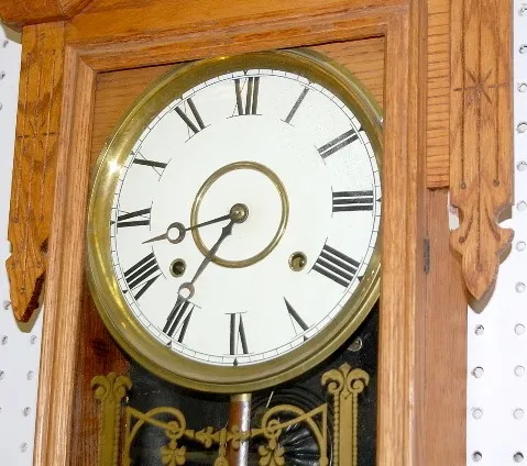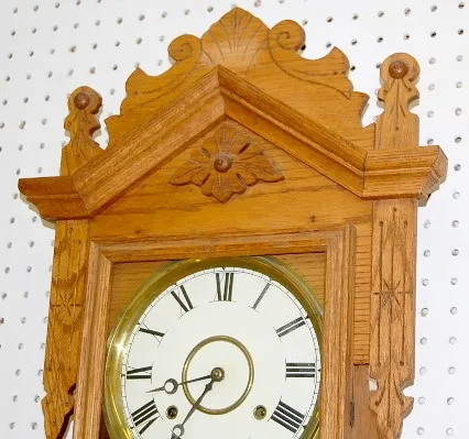 Antique Oak Carved Gilbert No. 117 Wall Clock