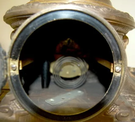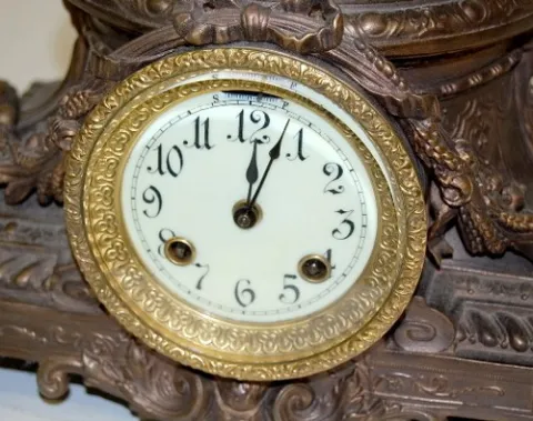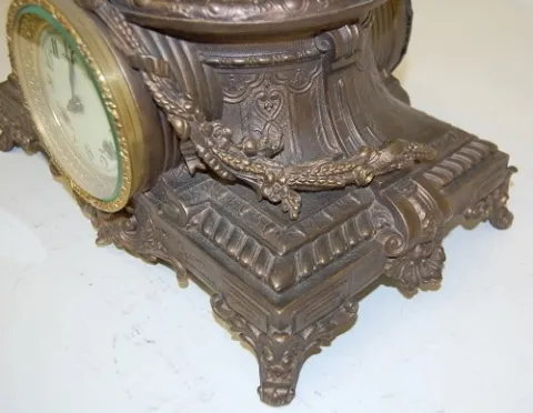 all metal with porcelain dial; 8 day; half hour gong strike; no pendulum or key; gong strikes; movement marked Ansonia Clock Co. (Venetian is missing ...