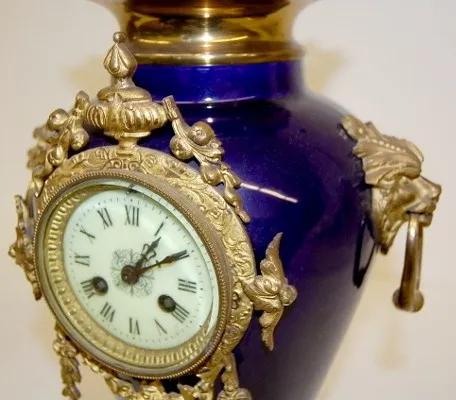 French Porcelain Urn Clock W/ Griffins