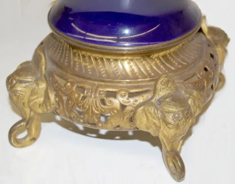 , lion handles; elephant head legs; signed Vincenti; time and strike, porcelain dial. (Small chip on bezel.) 21"...