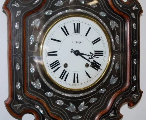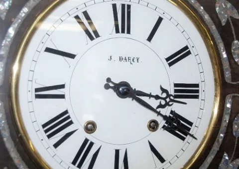 dial signed J. Darcey; nice example w/ lots of inlaid decoration and M.O.P. 25" x 19"...