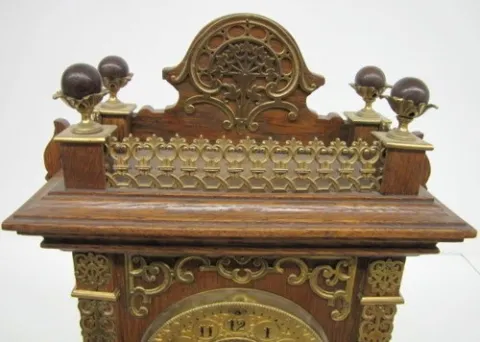 admin 16 March 2026 Clock image thumburl Ansonia Cabinet "F" Clock, Oak W/ Metal Trim fancy dial. 19"... Subscribe here Manufacturer Ansonia Model Cabinet F Price Type auction Sort Price Subscribers only Price Realized Subscribers only Pre-Auction Estimate Subscribers only