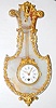 ornate lady head and floral trim; floral porcelain dial; time only. 13"...