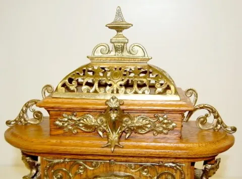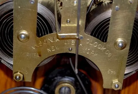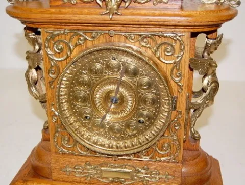 Ansonia Cabinet "E" Clock, Oak W/ Metal Trim
