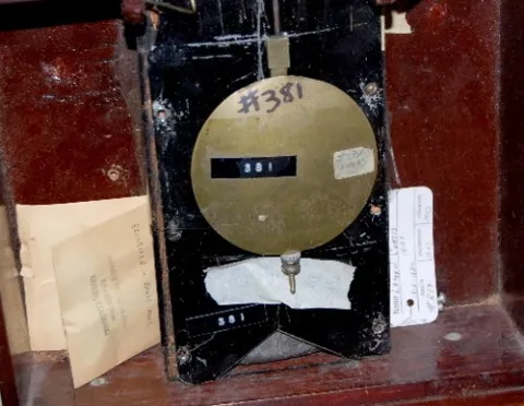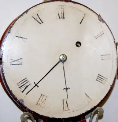 time only; inlay mahogany case; weight driven. 42"...