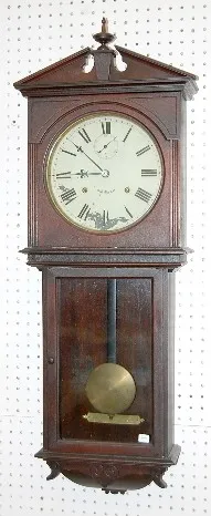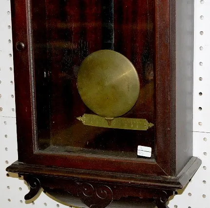 with seconds bit; 9 1/2" signed dial; brass trim and pendulum; original dark finish. (Case has minor wood chip on left side; dial has paint losses.) 4...