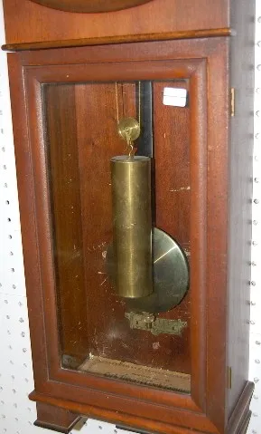 mahogany case; brass trim, pendulum and weight; inside paper label; 12" dial; with seconds bit. (Dial has paint losses.) 36"...