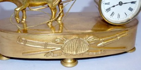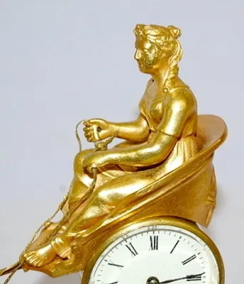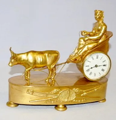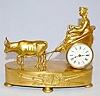 French Dore Oxen Pulling Lady in Cart Desk Clock