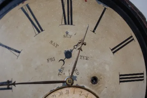 Day, Date, Month and Time Dial; Partial label; 10 1/2" Dial; 24". This lot is in rough, as is, as found condition....