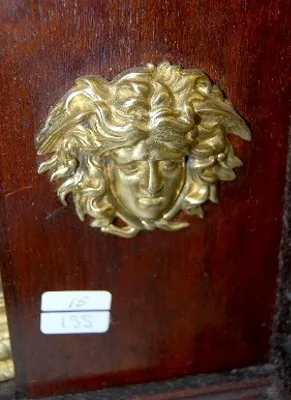 w/3 winged cherubs; ornate trim; lady heads on side; engraved silver dial; T and S. 19"...