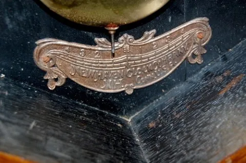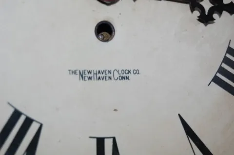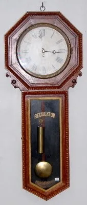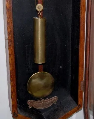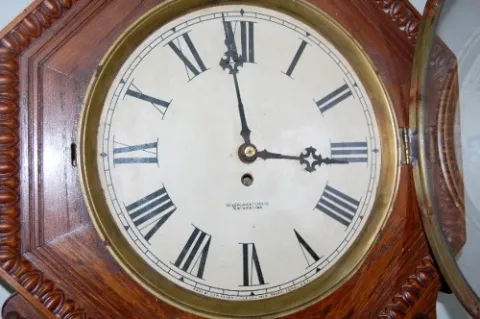 carved oak case; brass trim, weight and pendulum; 11" signed dial. 44 1/2"...