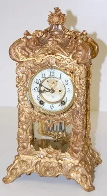 Ornate Ansonia "Floral" Crystal Regulator Clock