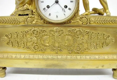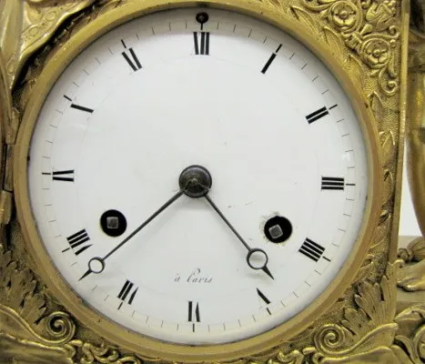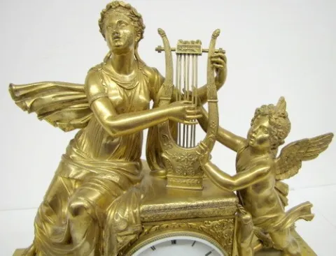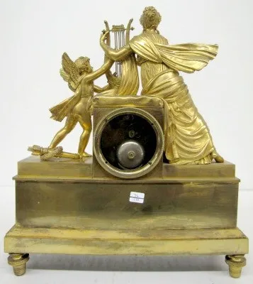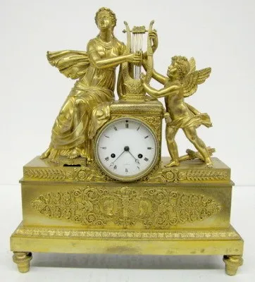 French Empire Dore Bronze Lady and Cherub Clock