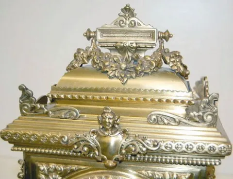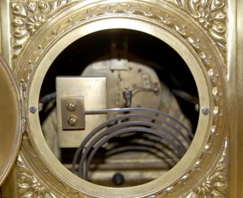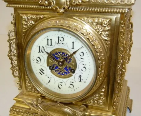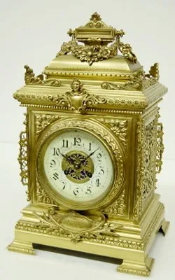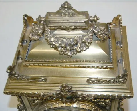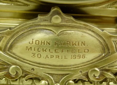 John Parkin, Micklefield, 30, April, 1896 tag on the front.; heavy floral decorated case; movement signed Marti. 17 1/2"...