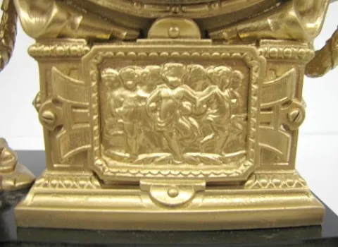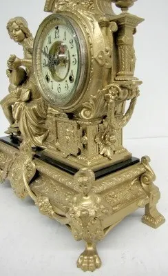 porcelain dial; T and S; open escapement; very ornate case w/ masks, ladies, claw feet. 19"...