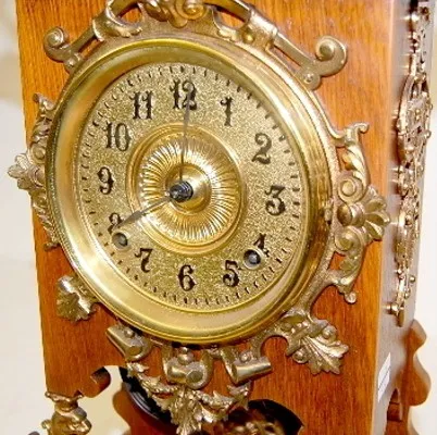 Ansonia Cabinet "D" Clock, Oak W/ Metal Trim