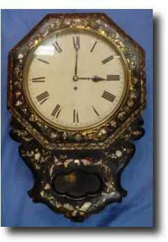 English drop dial clock, c1870 Fusee dial clock with papier mache frame in drop dial form - case in undamaged condition, English c1870
