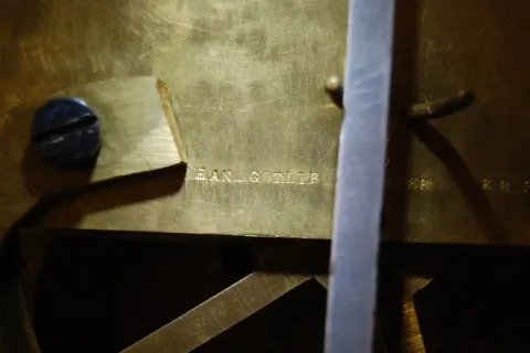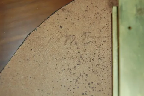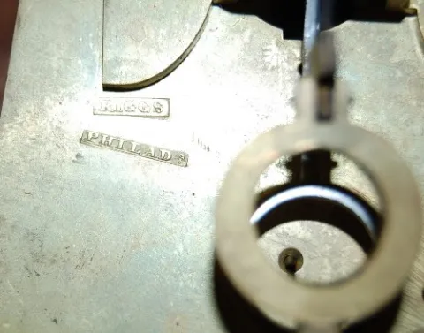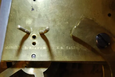 with seconds bit; movement signed Riggs Philadelphia; old glass (Glass has been repainted on top and touched up on the bottom.), weight is origianl an...