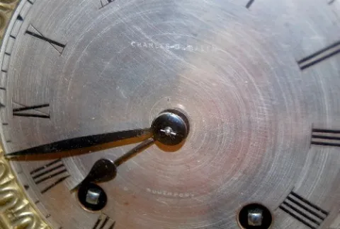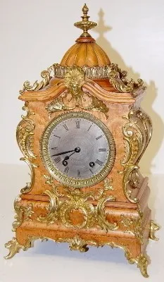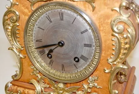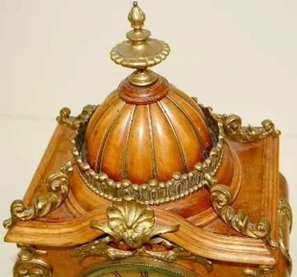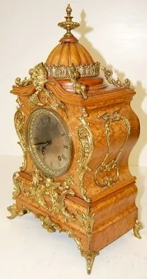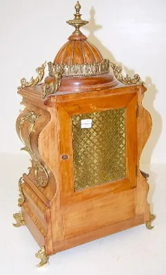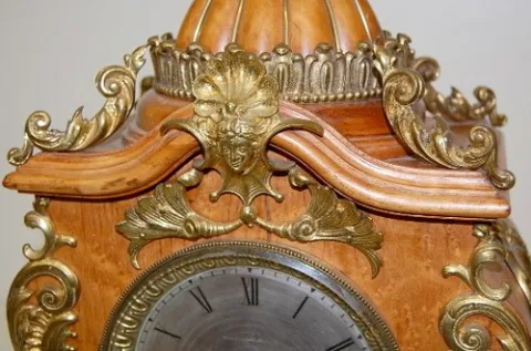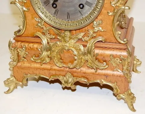 bird's eye maple case mounted with brass decoration including a lady head, a winged cherub face, griffin head feet and various other leafy details; br...