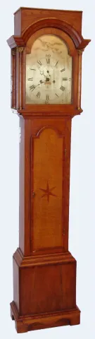 Henry Joseph, Camborne, English tall case clock with 8 day, time and bell strike, weight driven movement in oak case with brass dial decorated with eagle grasping banner reading "TEMPUS FUGIT", c1830