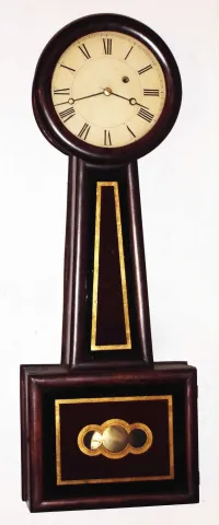 Attleboro 8 day weight driven mahogany banjo timepiece, c1850