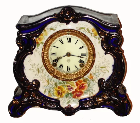 Ansonia Clock Co., New York, "La Landes" Royal Bonn 8 day time and strike porcelain mantel clock, c1910