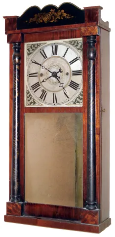 Unknown, (possibly a Chauncey Boardman) 30 hour time and strike/alarm half column and splat shelf clock, c1835