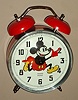 Mickey Mouse mechanical alarm clock automaton with Mickey's hands indicating the hours and minutes and his head ticking, licensed by Walt Disney Productions copyright 1977, made in France and new old stock, c1977