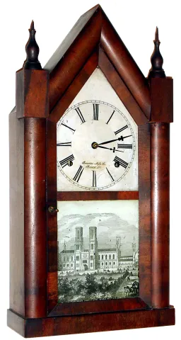 Brewster Mfg. Co., Bristol, Conn., 30 hour, time and strike, steeple shelf clock, c1852