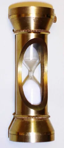 Sicura, Swiss gilt desk clock and hour glass combination with 23J, spring driven movement and metal dial with date at 3 inset into top of hour glass. The bottom of glass is inset with a gilt horse's head, c1965