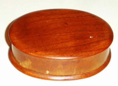 there is a split in the oval frame beneath the compass and a small piece of veneer missing on top cover. The compass needle is free and working and th...