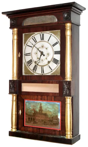 Olcott Cheney, Berlin, Conn., 30 hour time and strike wood movement column and cornice shelf clock, c1831