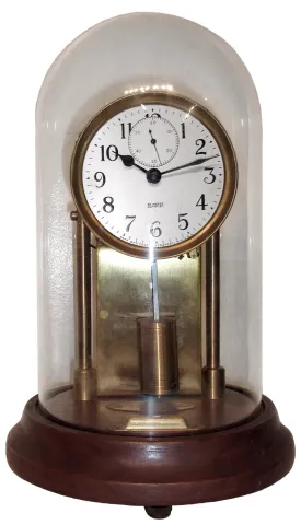 this early electrically impulsed clock is in nice original condition with old patina on the brass and turned wood base. The silvered dial is excellent...