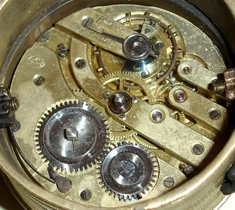 the balance is free, but not ticking. the case retains its original finish in good condition with no damage. Ht 7"...