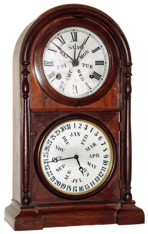 Welch, Spring and Co., Forestville, Conn. "Italian No. 3" 8 day time and strike double dial calendar shelf clock, with B. B. Lewis's patent calendar mechanism. c1870