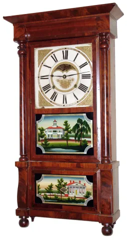 Birge, Mallory and Co., 8 day time and strike column and cornice or double decker shelf clock, c1846