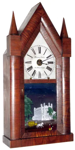 Chauncey Jerome, New Haven, Conn., 8 day, time and strike, oversize fusee steeple clock, c1855