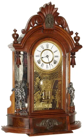 Ansonia Clock Co., Ansonia, Conn., "Triumph", 8 day, time and strike, mirror side mantel clock, in walnut c1880