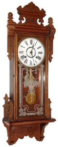 William L. Gilbert Clock Co., Winsted, Conn., "Thespian", 8 day, time and strike, wall clock, c1910.